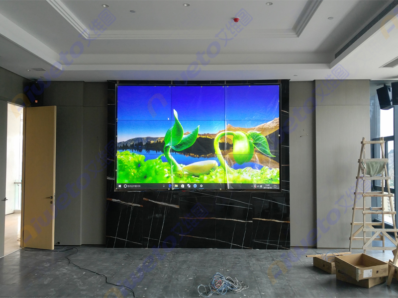 艾維圖科技對整個大屏幕進行了功能規劃,設計了3×3拼接,采用目前較流行的液壓式前維護支架。該顯示系統使用了艾維圖55寸超窄邊液晶拼接單元,外置視頻圖像處理器以及一套高性能中央控制系統系統。本次建設選用的液晶顯示單元單屏分辨率為1920×1080,畫面清晰、色彩真實、大畫面大尺寸視覺沖擊感強力!結合會議室現場環境簡直天衣無縫。