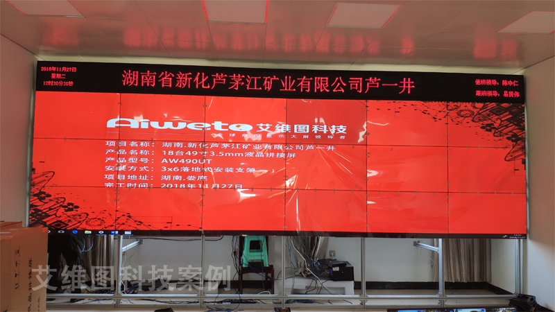 艾維圖科技為湖南省新化縣資煤集團蘆茅江礦業有限公司精心打造的49英寸超窄邊液晶拼接墻AW490UT,共選用了18塊液晶拼接屏,組成3*6拼接墻。艾維圖液晶拼接墻AW490UT顯示系統采用LG49寸超窄邊液晶面板,非顯示區域之間拼縫僅為3.3mm,具有近乎無縫的顯示效果,對比度3500:1,顯示出的圖像色彩靚麗、還原性更好、層次感更突出。艾維圖產品獨具的內置拼接功能:不需要控制器的內置拼接顯示單元,所有的顯示拼接技術置于單個顯示單元中,通過軟件來調節;LAN控制功能實現網絡控制:不但可以通過RS232串口來實現遠程控制,還可以通過網絡連接進行控制,控制更方便靈活。可靠性高,畫面穩定,完全達到監控領域對拼接墻能夠長時間不間斷的穩定運行的標準。
