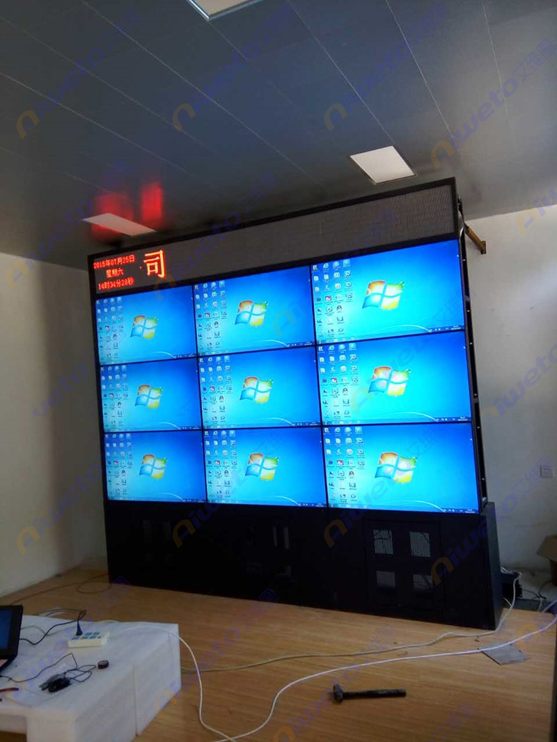 通過對客戶使用需求和部署環(huán)境的認真研究和考察,Aiweto(艾維圖)科技工程師給出了多套相關(guān)解決方案,最終選用了由9臺(Aiweto) 46寸液晶拼接單元組成的3×3大屏幕液晶拼接墻。(Aiweto) 46寸液晶拼接單元是艾維圖科技推出的一款超窄邊液晶拼接顯示器,采用工業(yè)級面板,采用先進的集成處理芯片,性能穩(wěn)定,運動圖像補償?shù)泉氂械南冗M技術(shù),有效的保證了輸出圖像的效果,支持7×24小時開機,拼接邊縫小,適合大屏液晶拼接項目應(yīng)用。
